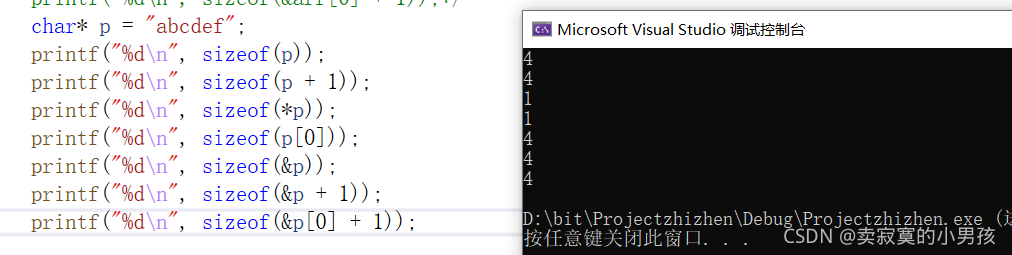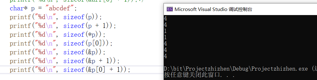 printf("%d\n", sizeof(&arr[0]+1));//4 表示的是数组第二个元素的地址大小,是四个字节。