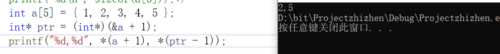 printf( "%d,%d", *(a + 1), *(ptr - 1));