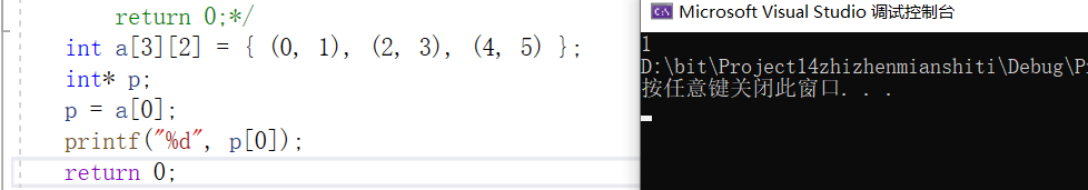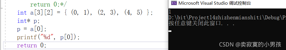 首先我们观察数组,里面放的是逗号表达式,逗号表达式的结果是最后一个表达式的值,所以数组中存放的内容是: