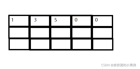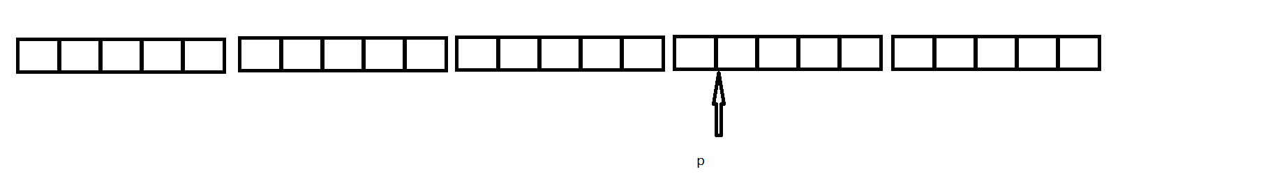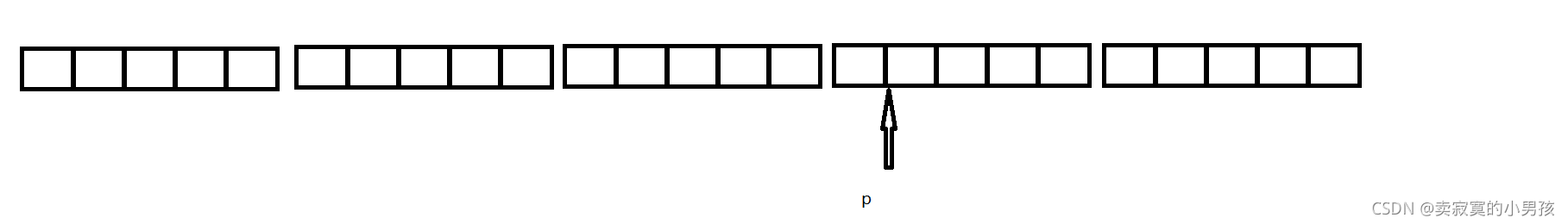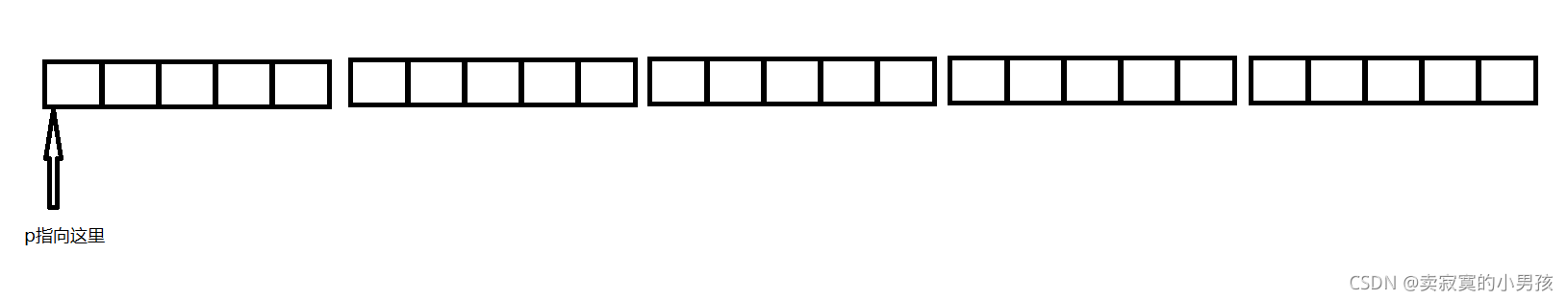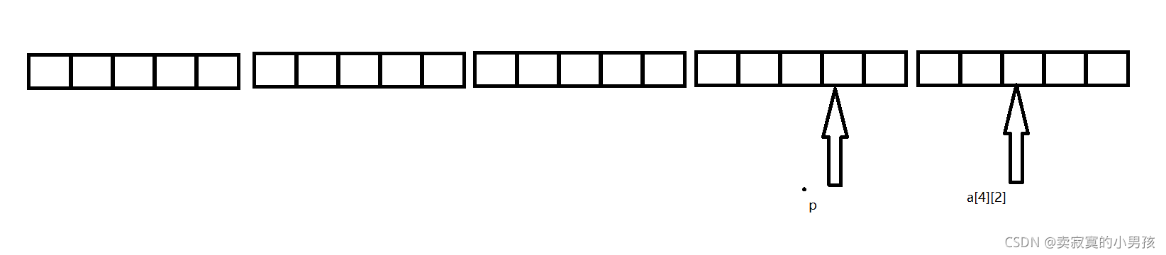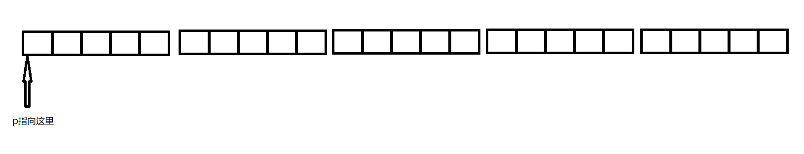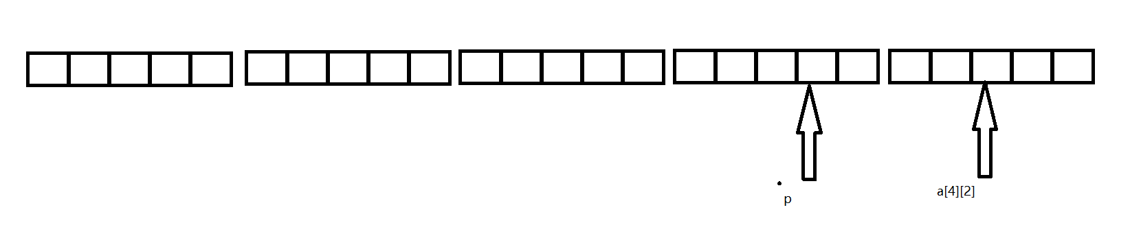 首先定义了一个二维数组,但没有涉及到数组内容,所以没初始化,定义了p是一个指向含有4个整型元素的指针,注意a数组一行是五个元素。此时让p指向a,效果是这样的: