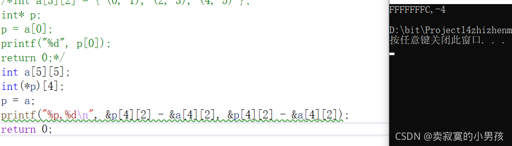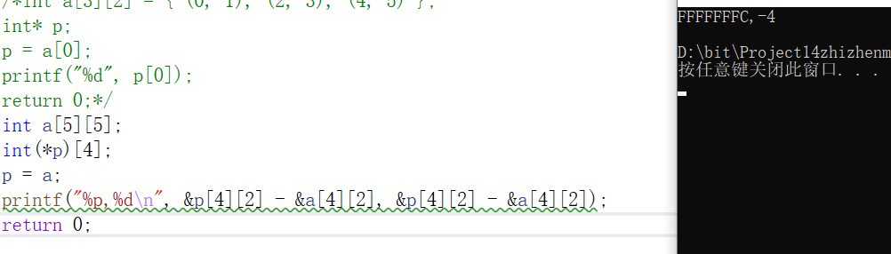 printf( "%p,%d\n", &p[4][2] - &a[4][2], &p[4][2] - &a[4][2]);