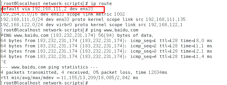 ip route查看路由表是否有默认路由再ping通外网