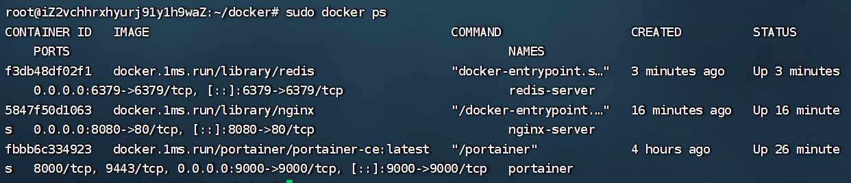 | f3db48df02f1 | docker.1ms.run/library/redis | Redis 服务器 | 6379:6379(TCP) | |