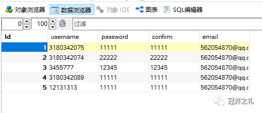 到这里我们就完成所有操作,最后只需要直接在登录页面提交信息、然后在数据库管理软件里面刷新一下数据库即可。来看看效果吧。