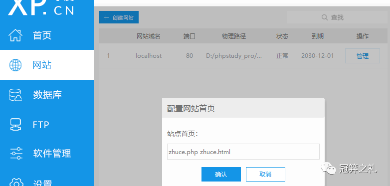 5.最后设置该网站默认打开页面为zhuce.html,就可以直接打开该网站就进入注册页面。(右击管理—打开网站)