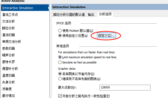 Multisim中仿真出现仿真错误的解决方法:增加相对错误容限值法