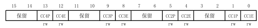 2) 捕获/比较使能寄存器(TIMx_CCER)