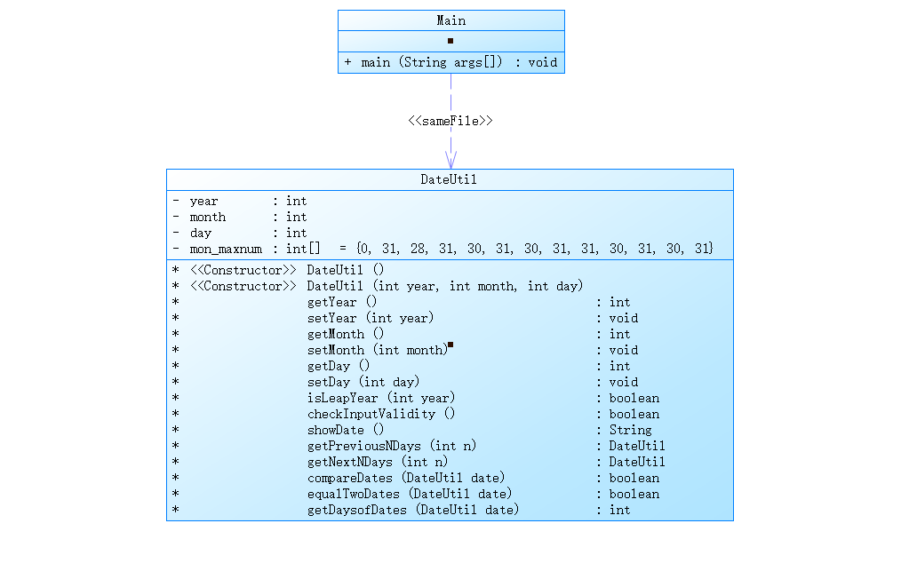 解题心得:此题难度其实也不大,当时由于没有理解对象类型作为返回值、对象类型作为方法参数以及boolean compareDate(DateUtil date) boolean equalTwoDates(DateUtil date) int getDaysofDates(DateUtil date)之间的关系不清晰导致代码没有写完。事后通过对对象类型作为返回值与参数的完整学习重写了代码有了更深刻的理解。