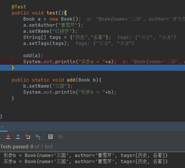 在调用有参方法时,将实参传递到方法中,会将实参的地址给到形参,而实参的地址指向内存中的对象,所以形参被改变了,实参也会被改变。