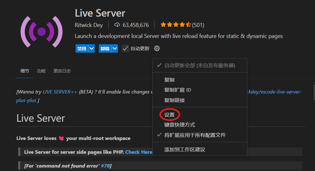 找到Live Server的设置