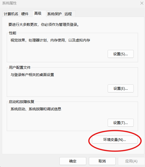 找到高级里的环境变量并打开
