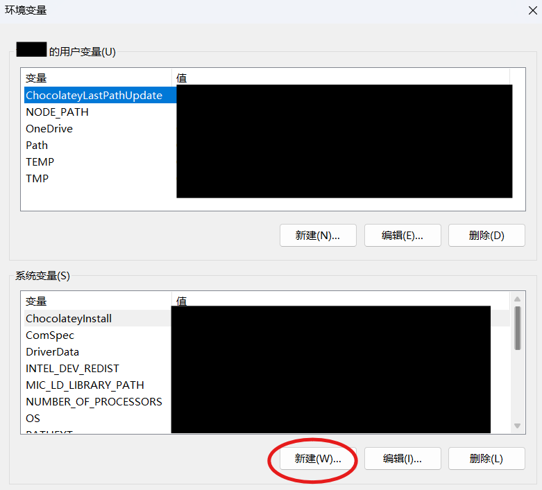 在系统变量里点击新建