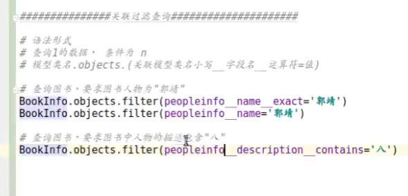 book = models.BookInfo.objects.get(id=1) book.peopleinfo_set.all()