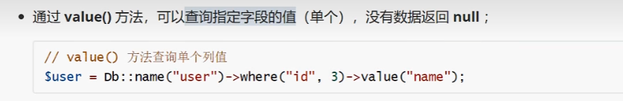 $user = Db::table("user")->where("id",1)->find();