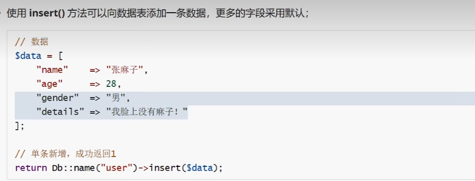 使用 insertGetld()方法,可以在新增成功后返回当前数据 ID;