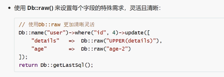 使用 Db::raw()来设置每个字段的特殊需求,灵活且清晰
