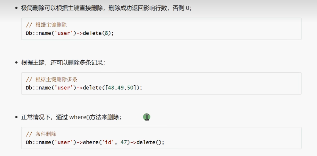 // 引入Db数据库类 use think\facade\Db;