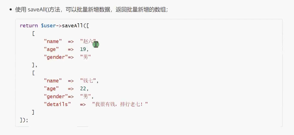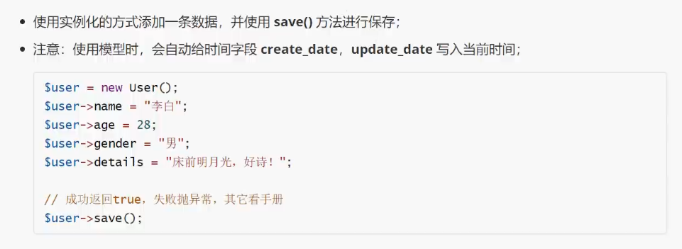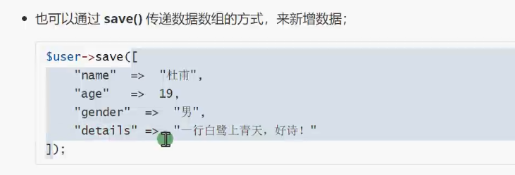 使用 ::create()静态方法,来创建要新增的数据