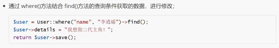 如果希望只查询一条数据,可以使用** find() **方法,需指定 where 条件: