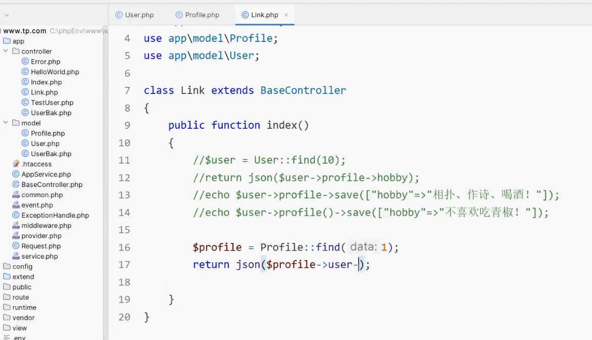 创建 模型 2 方法名 随便写 profile() abc () 都可以