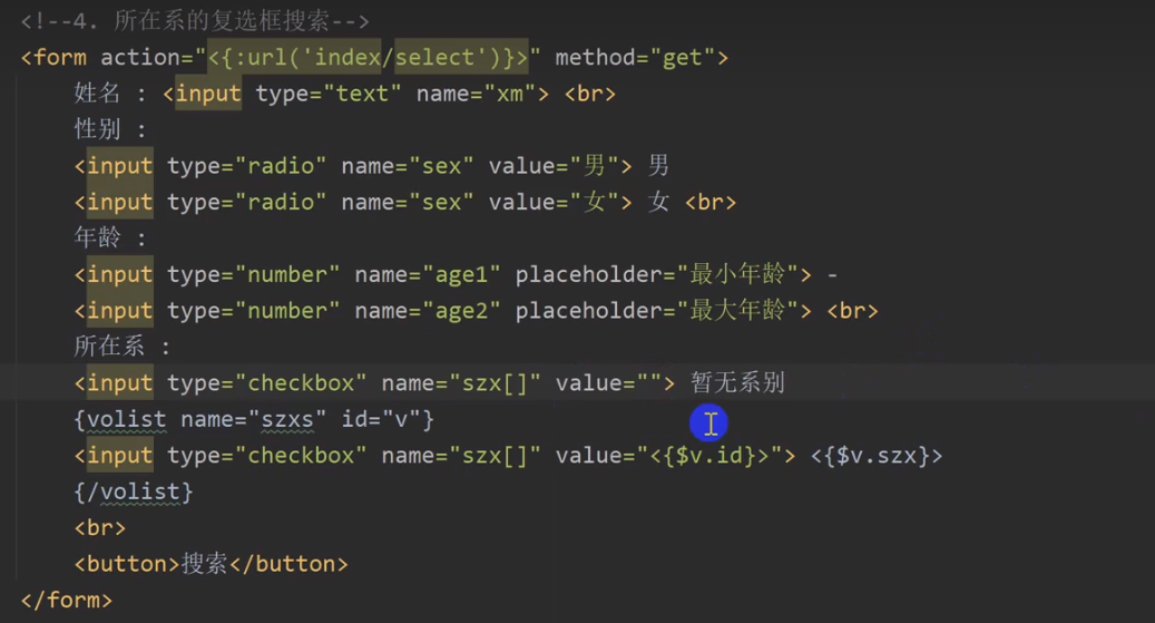 前台搜索数据 留置的代码