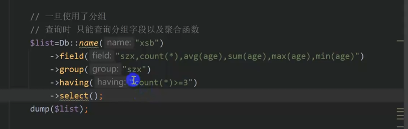 field () 字段 group() having () 的使用