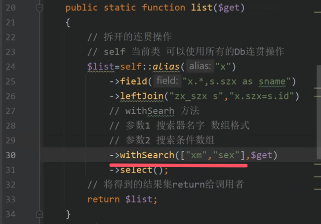 withSearch(['xm' , 'sex' ], $get )