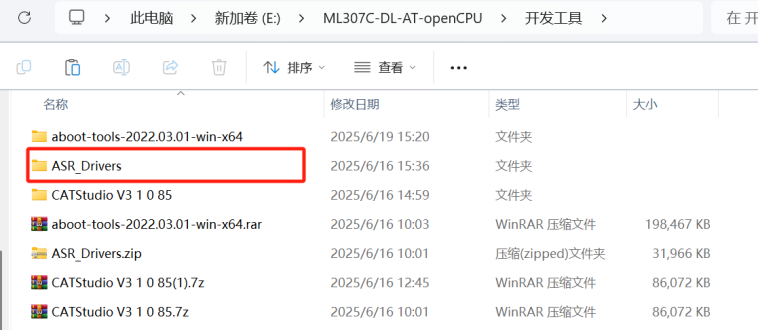 1、打开ML307R-DC-openCPU,打开开发工具,解压ASR_Drivers.zip,打开解压后的文件,进入Drivers。