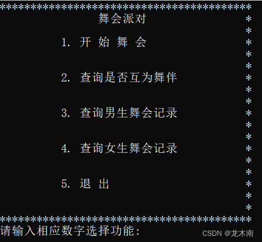 舞会结束,功能演示完毕,使用5退出功能退出系统