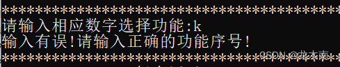 例如:此时输入了k,会出现提示”输入有误!请输入正确的功能序号”