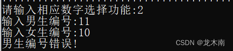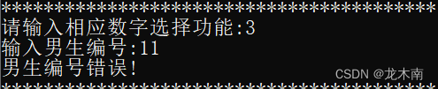 输入不存在的男生编号也会导致系统报错