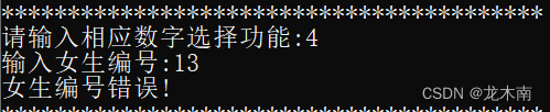 输入不存在的女生编号也会导致系统报错