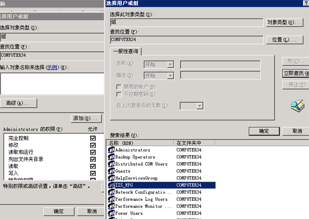 3.接下来设置IIS权限。打开“我的电脑”,在存放Rewrite的分区点右键 → 属性 → 安全 → 添加?→ 高级 → 对象类型?→ 只留“组”一个钩 → 确定?→ 立即查找 → 选择“IIS_WPG” → 确定 → 选择“读取”、“读取和运行”和“列出文件夹目录”三个选项即可。最后别忘了确定。(此种只在iis6中有iis5无IIS_wpG)