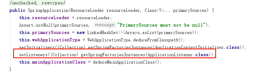 图一:SpringApplication的构造函数,获取所有监听