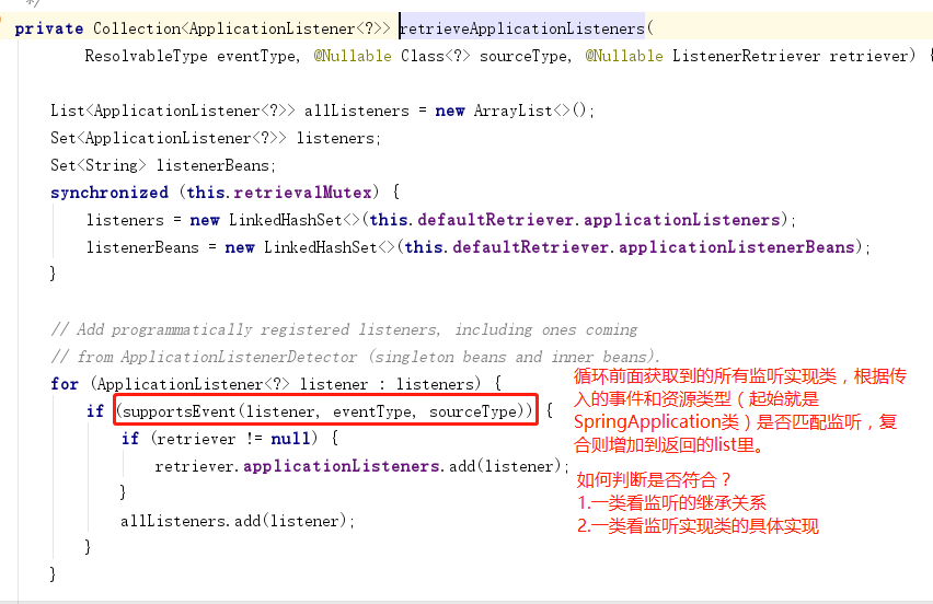 4.SimpleApplicationEventMulticaster.multicastEvent()是如何判断要执行哪些监听,哪些不执行的?如下: