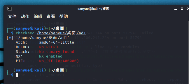 首先在linux上下载好python和pwntools(说实话到现在还不会用命令行下载软件,不知道换源啥意思,还好kali自带python。。)