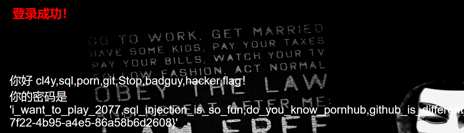 进入就是登录界面,通过题目可以直接判断出是sql注入,先随便输入用户名和密码