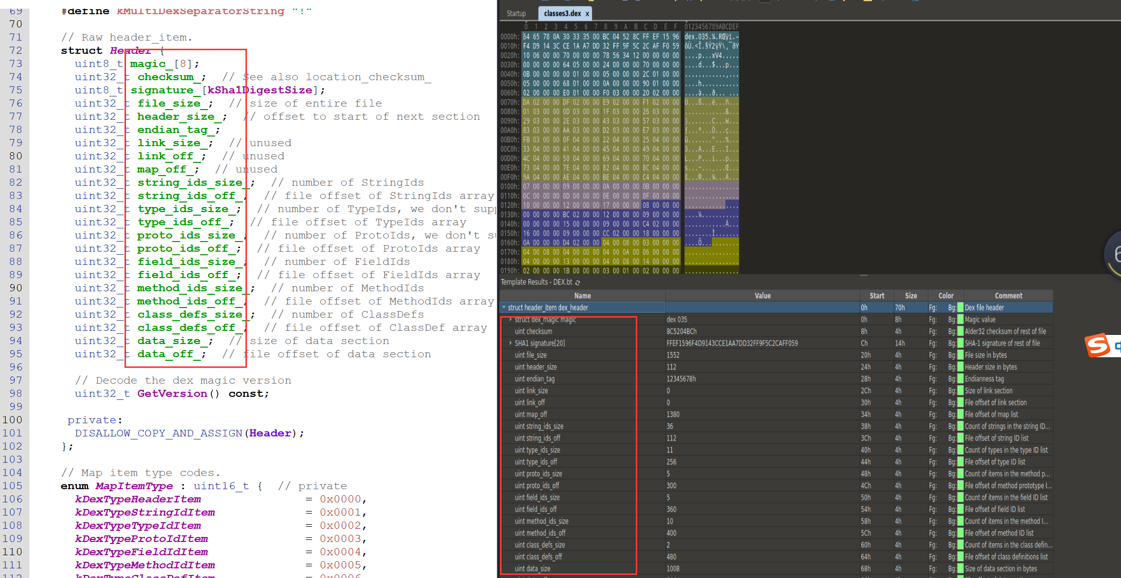 uint8_t magic_[8]; 头部固定 标识是一个dexfile pdf jpg 也有自己的头