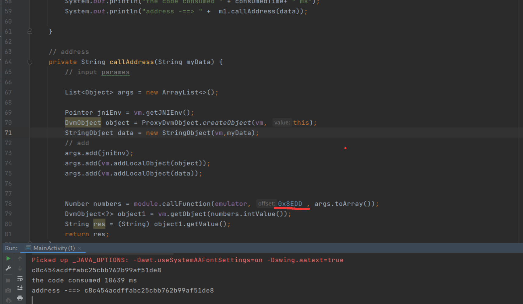 2.通过地址要自己构造参数jniEnv,DvmObject,data. 加入的时候得用addLocalObject加入