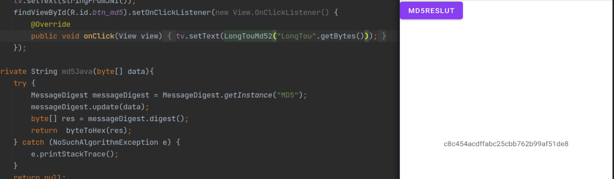 首先我们用Java实现一下MD5调用