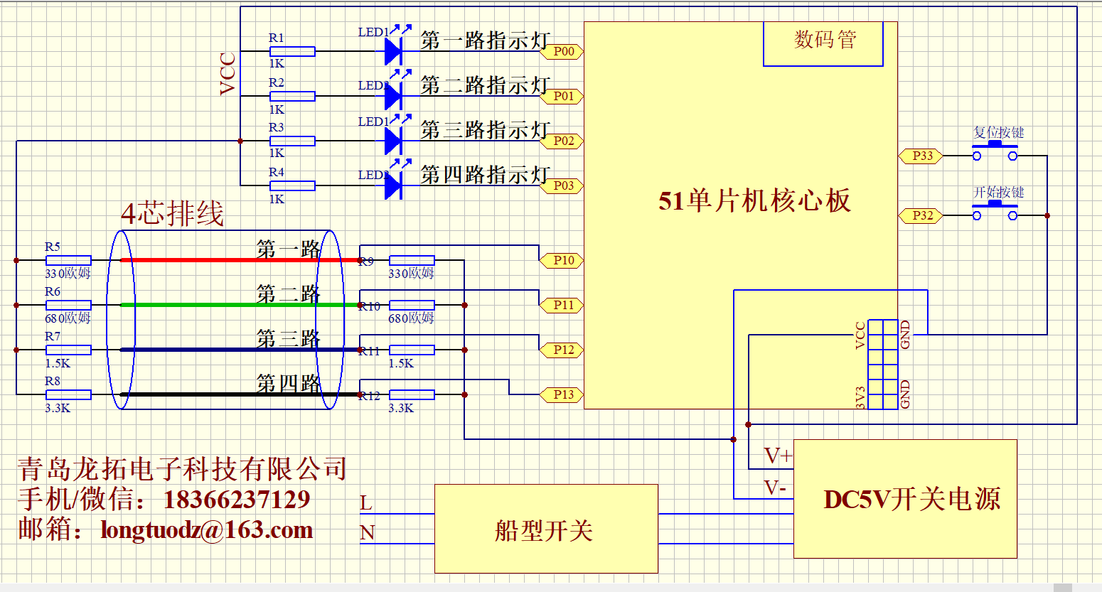 每一路配有专用指示灯,方便用户观察,线序异常蜂鸣器报警功能。