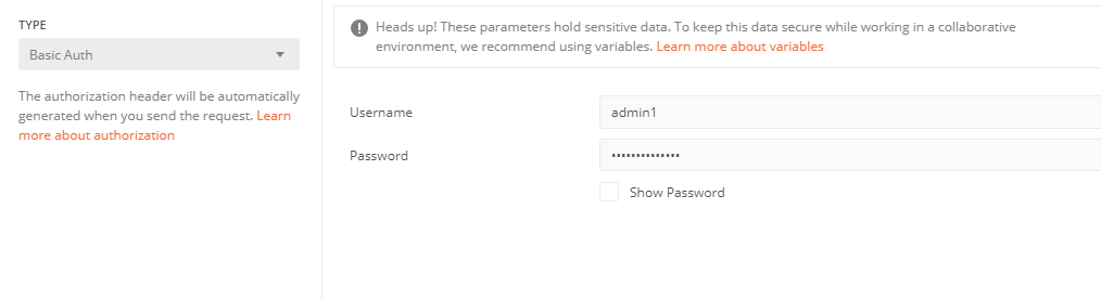 还可以通过账号密码来进行验证,选择Bearer Auth然后输入账号密码;
