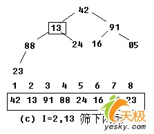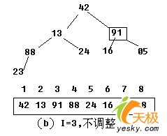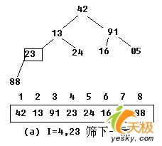 【示例】:对关键字序列42,13,91,23,24,16,05,88建堆。