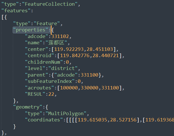 实际上,直接用 GeoJson 中 "properties" 下任意一个属性,都可以代替 field 直接使用。例如: