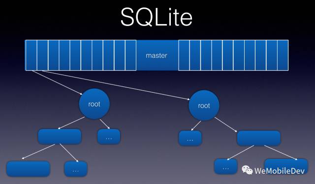 首先我们来看 SQLite 的架构。SQLite 使用 B+树 存储一个表,整个 SQLite 数据库就是这些 B+树 组成的森林。对于每个表的元数据(表名、根节点地址、表 scheme 等),都记录在一个叫 sql_master 的表中。这个 sql_master 表(下简称 master 表) 本身也是一个 B+树 存储的普通表。