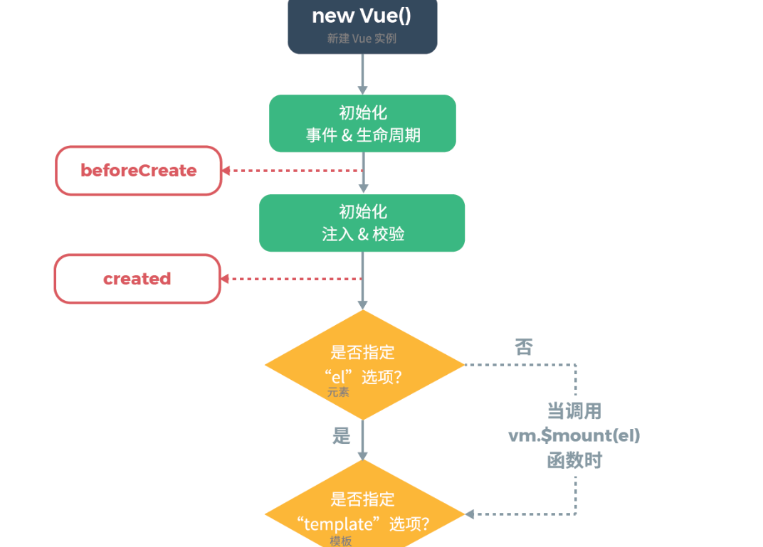 created:实例已经在内存中创建OK,此时 data 和 methods 已经创建OK,此时还没有开始 编译模板;
