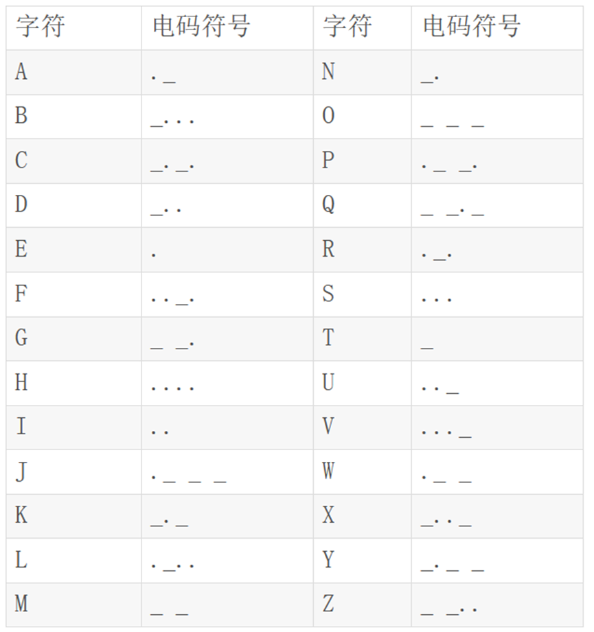 摩斯密码的原理是用特殊的符号代表具体的字母
