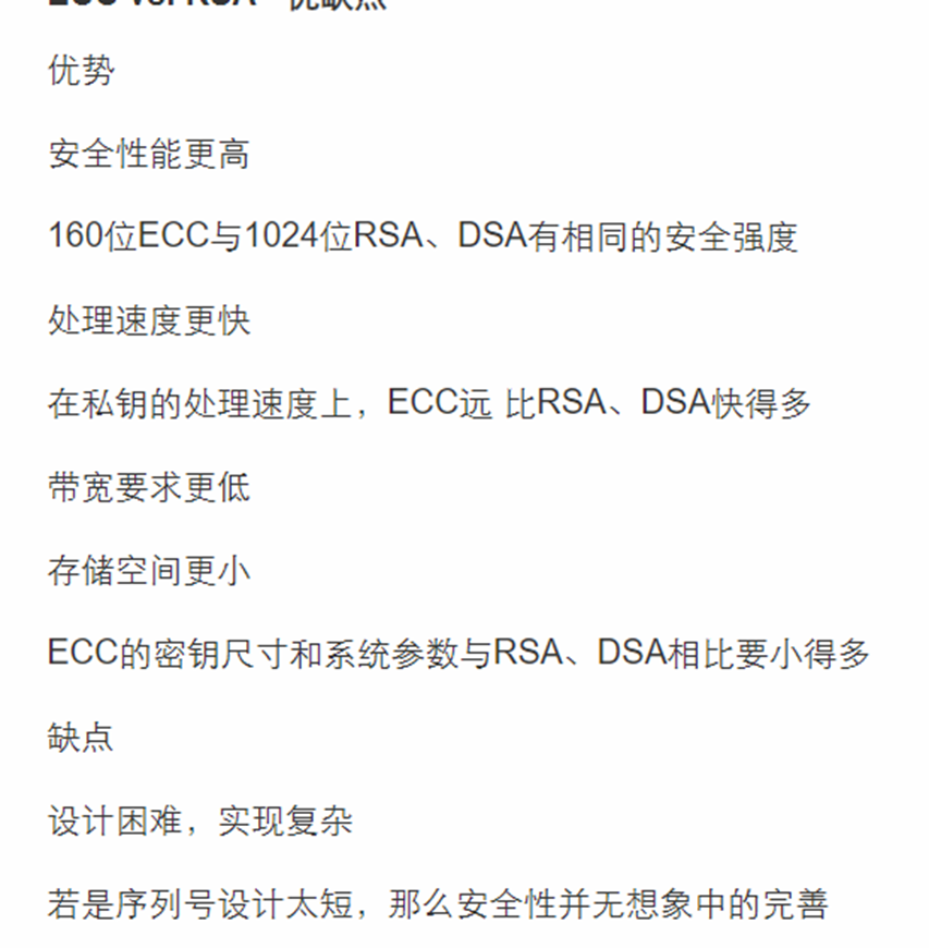 椭圆曲线安全性特别高,比特币,许多大型网站的身份认证机制便是以ECC为基础的