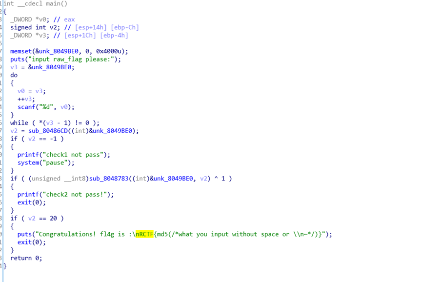 杨辉三角无疑了,程序的输入应该就是杨辉三角的前210项,flag应该就是前210项的md5值